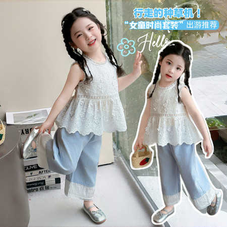 1*5收藏“RLS06花边绣花上衣牛仔裤套装”